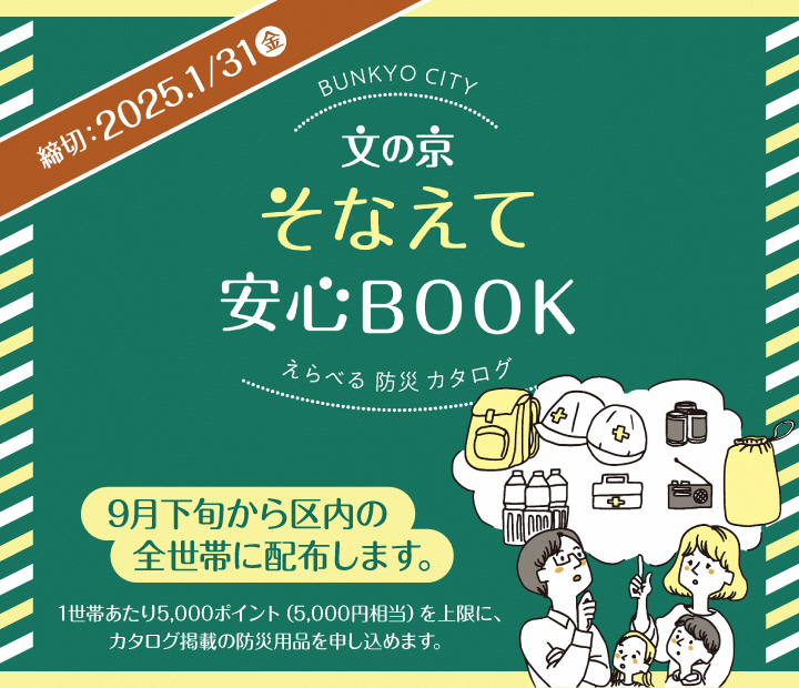 【お知らせ】「文の京そなえて安心BOOK」の申し込みを受付中です。まだ冊子がお手元に届いていない方は、至急コールセンター(0800-170-0689)へご連絡ください。6年8月1日時点で文京区に住民登..