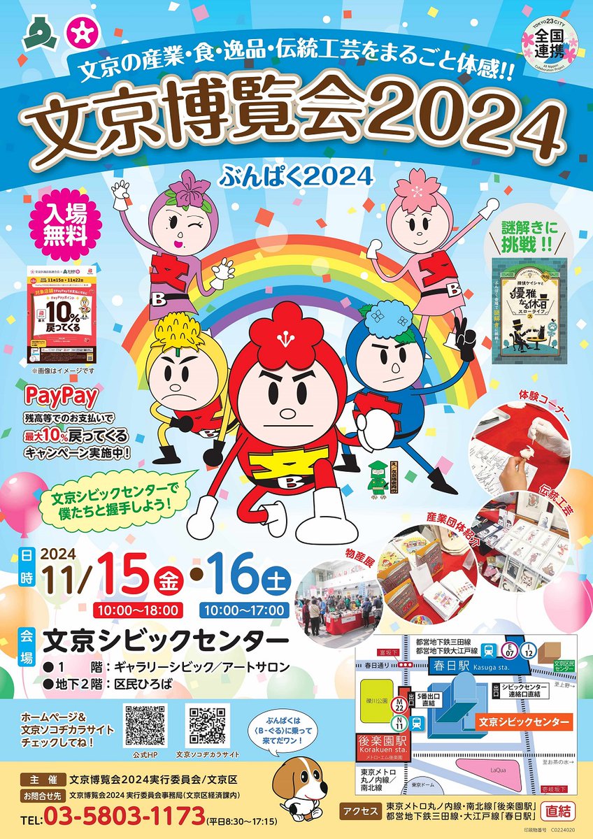 【イベント】明日11/15(金)から11/16(土)までの2日間、シビックセンター1階、地下2階で「文京博覧会2023」を開催します。区内商店、連携自治体による物販、伝統工芸の体験、会場内を巡る謎解き..