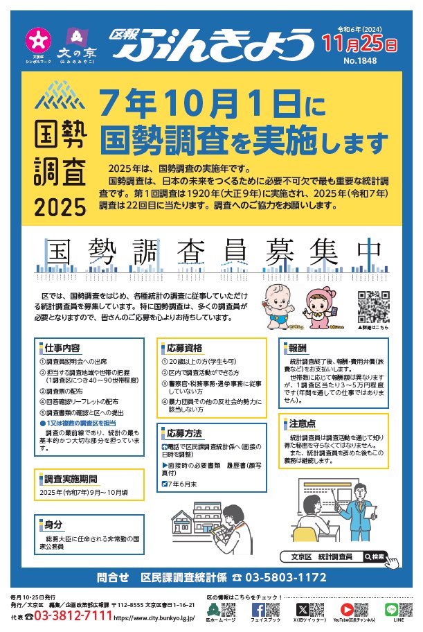 【お知らせ】区報ぶんきょう11月25日号を発行しました。町会・自治会などを通して全世帯へ配付しています。図書館・地域活動センターなど区の施設、区内地下鉄全駅にも配架しています。ぜひご覧ください。htt..