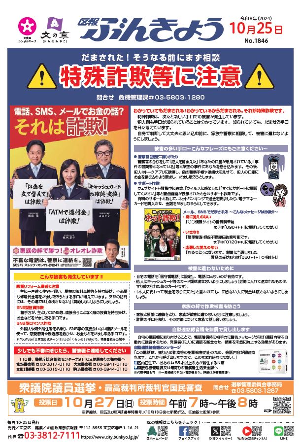 【お知らせ】区報ぶんきょう10月25日号を発行しました。町会・自治会などを通して全世帯へ配付しています。図書館・地域活動センターなど区の施設、区内地下鉄全駅にも配架しています。ぜひご覧ください。htt..
