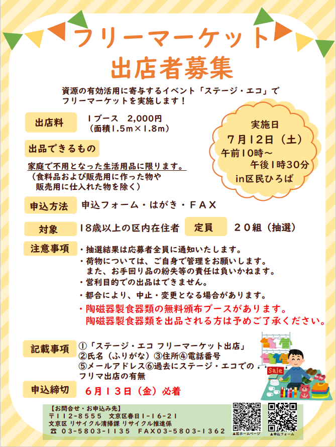 「ステージ・エコイン区民ひろば」開催!ご家庭に眠る未利用食品・衣料品・各種資源の回収や食器類の無料頒布、フリーマーケットを行います。7/12(土)10時~13時30分詳細は区HPを参照https://..