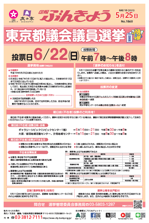 【お知らせ】#区報ぶんきょう5月25日号を発行しました。町会・自治会などを通して全世帯へ配付しています。図書館・地域活動センターなど区の施設、区内地下鉄全駅にも配架しています。ぜひご覧ください。#文京..