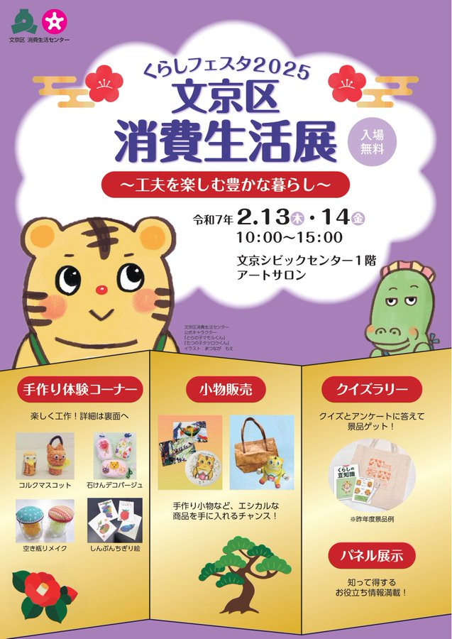 【イベント】2/13(木)・14(金)に「くらしフェスタ2025消費生活展」を開催!食品・製品の安全、契約、エシカル消費等くらしに役立つ情報をお届けします。手作り体験や物販等のイベントも実施!クイズに..