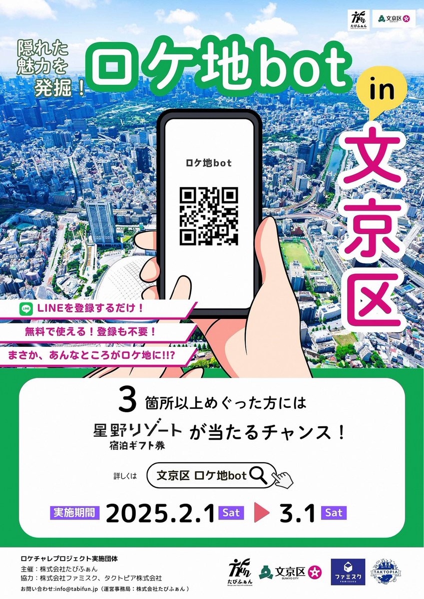 【イベント】「ロケ地botin文京区」リリース開始!「ロケ地botin文京区」では、文京区にあるおすすめのロケ地とロケチャレの応募で集めた皆さんのおすすめロケ地もLINEで掲載!3か所以上巡ると、豪華..