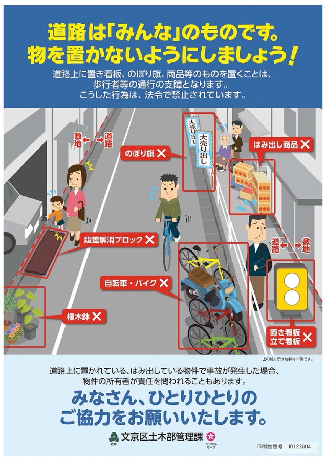 【お願い】道路上に置かれた車の乗り入れステップや植木鉢等は、歩行者等の通行の支障になることがあります。こうした行為は法令等で禁止されており、道路に置かれている物で事故が発生した場合、その所有者が責任を..