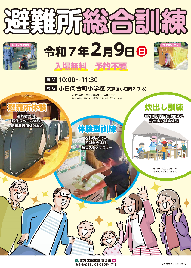 【イベント】2/9(日)10時から11時30分まで、小日向台町小学校避難所総合訓練を実施します。避難所運営の様子や、煙体験ハウス、防災クイズスタンプラリー等を体験できます。ぜひお越しください。http..