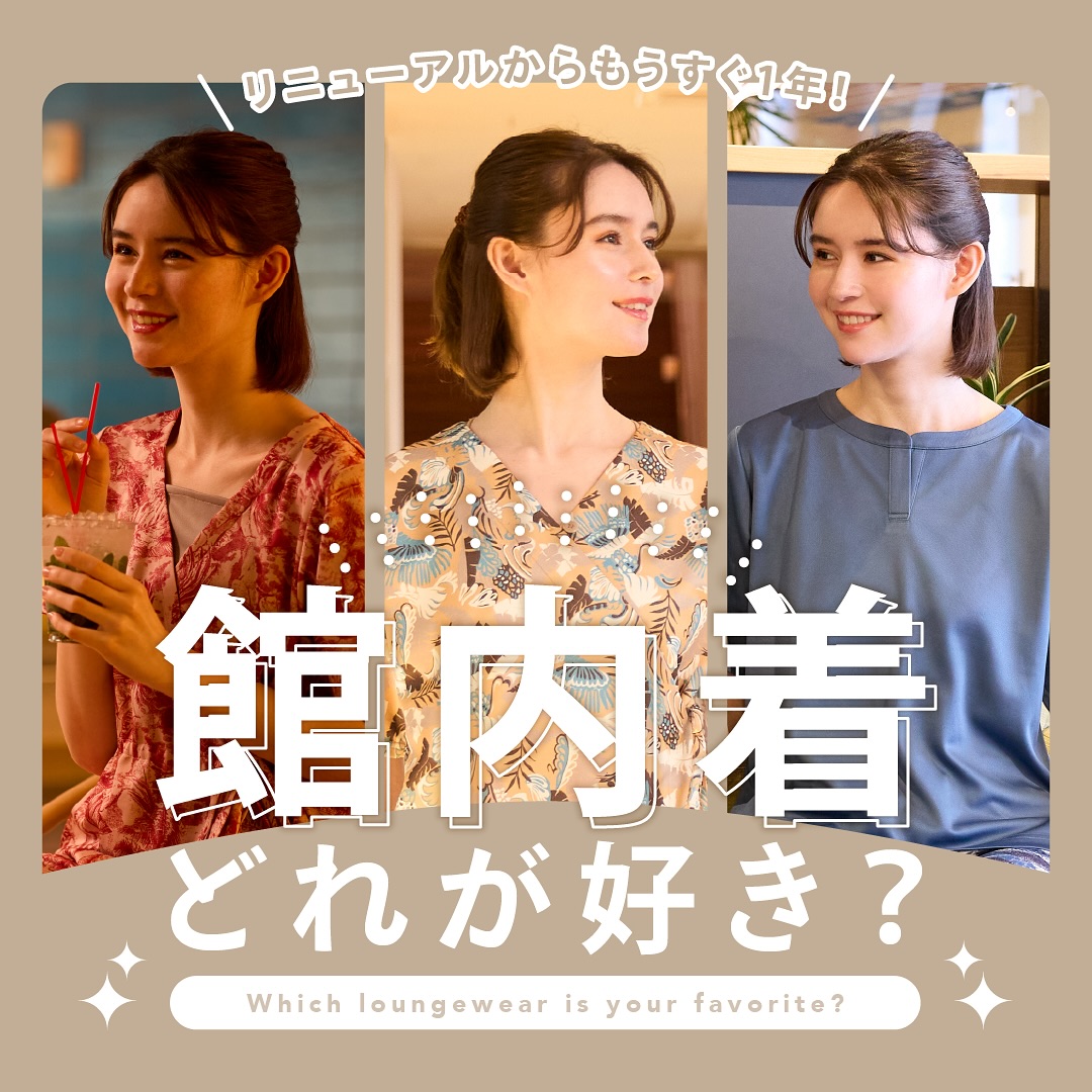 4月にリニューアルした、スパラクーアの「選べる館内着」👕💫おかげさまで3タイプそれぞれご好評いただいて..