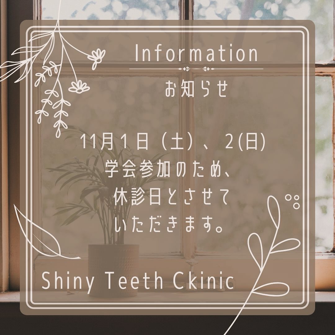 🍂11月1日、2日の休診日のお知らせ Shiny Teeth Clinic🦷
