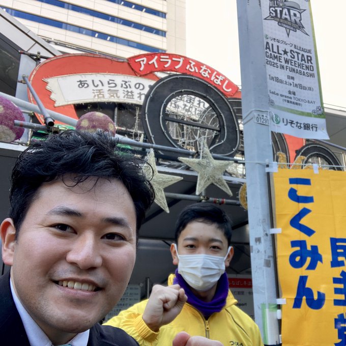 船橋駅の南口で #国民民主党 千葉学生部さんと街頭活動をしました!わざわざチラシを受け取りに来て頂いたり、声をかけて頂いたりと関心の高まりを感じます。#手取りを増やす