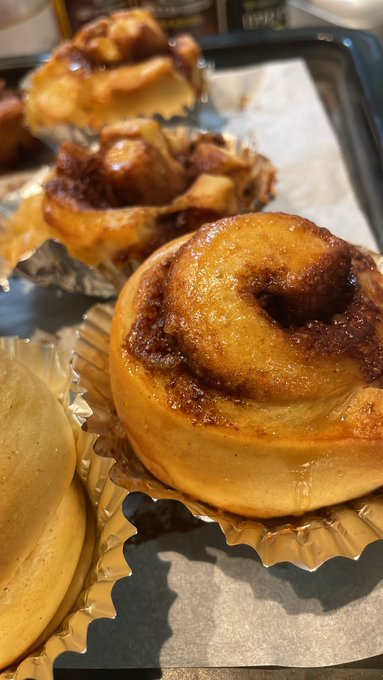 どうしてもお店で出したいシナモンカルダモンロール表面をカソナードでキャラメリゼして甘くパリパリにしたらの実験中おいしくな〜れ