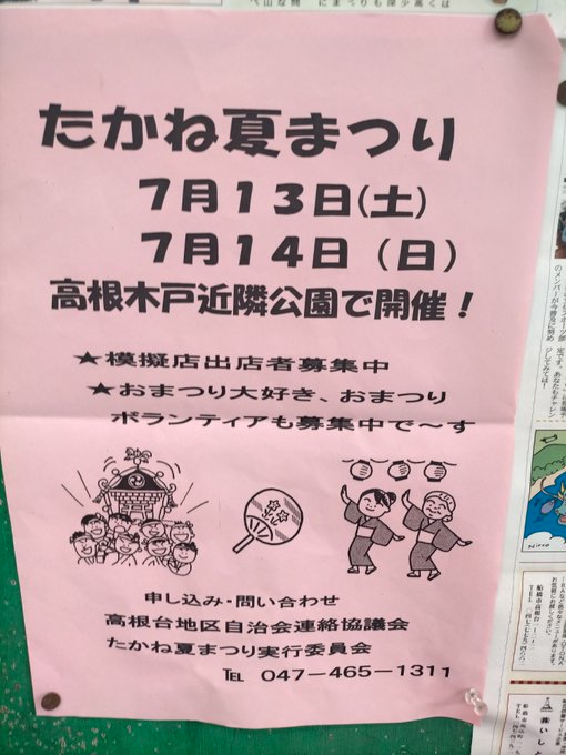 今年のたかね夏まつりは、 7月13日㈯、14日㈰ 15~20時 @高根木戸近隣公園になります。 今年も地域の仲間の皆さんと生ビール、焼き鳥、焼きそば、あげもちの模擬店を出店します。 #船橋市