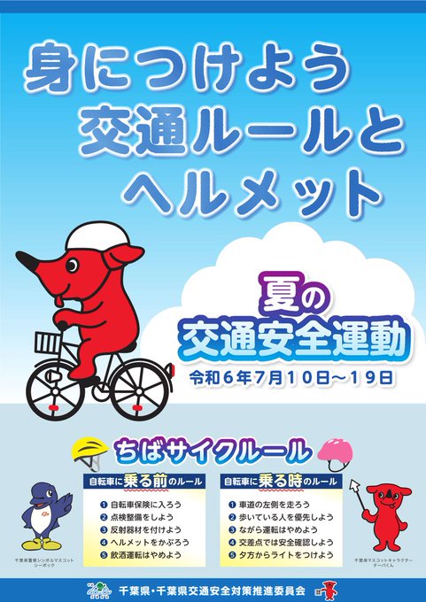 【#千葉中央警察署からのお知らせ】夏の交通安全運動イベント日時:7月10日場所:蘇我コミュニティーセンター☆警察車両展示☆交通安全装備資器材体験☆電動車イス乗車体験☆トラフィックンの交通安全教室小さな..