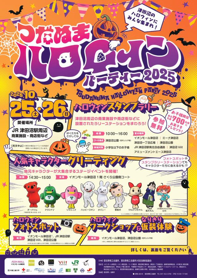 \商店会イベント情報/10/25(土)・10/26(日)#習志野商工会議所と津田沼駅周辺の商業施設や商店会が協力して「津田沼ハロウィンパーティー2025」を開催津田沼の#ハロウィンにみんな集まれ詳しく..