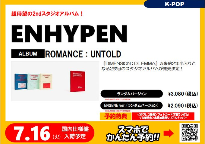 【#ENHYPEN】多くのお問い合わせをいただいております2ndStudioAlbum『ROMANCE:UNTOLD』国内流通盤https://tower.jp/article/feature_ite..
