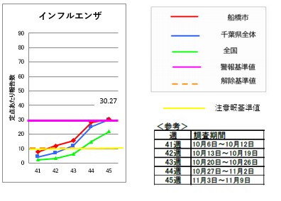 インフルエンザ警報船橋市では2025年第45週定点報告数が「30.27」となり、インフルエンザ警報を発令しました。石けんで手を洗う、咳エチケットなど感染予防対策を心がけてくださいhttps://cit..