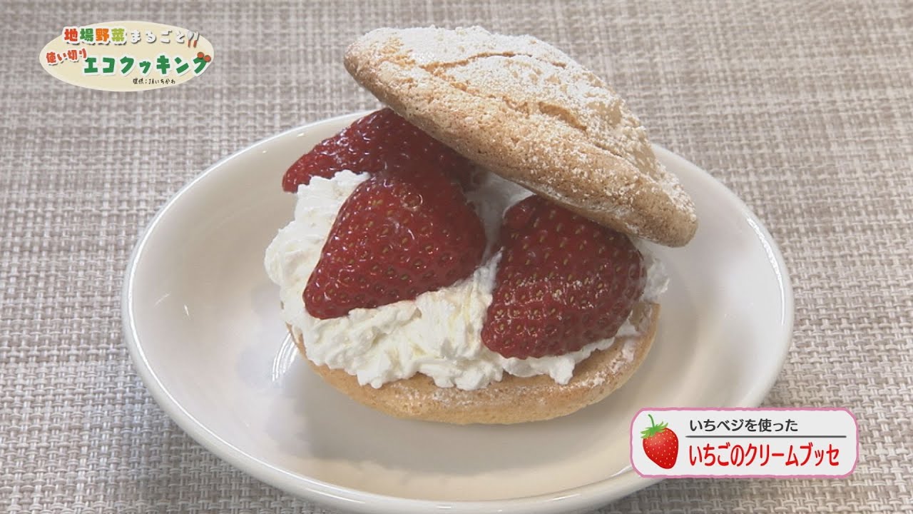 #JAいちかわ#いちご#レシピ袋詰めの野菜をしっかり使い切るレシピを紹介する「地場野菜まるごと!!使い切りエコクッキング」24回目は「いちベジのいちご」を使った「いちごのクリームブッセ」にチャレンジ!..