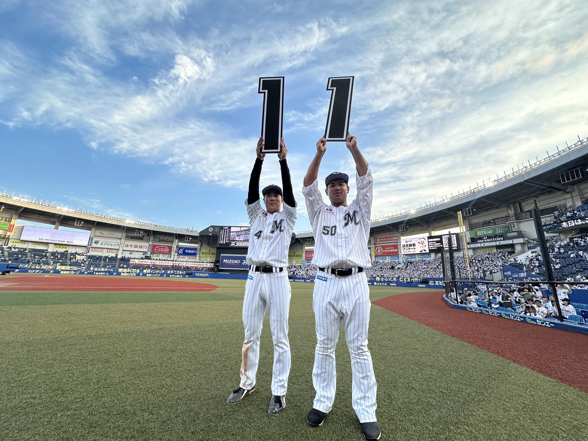 #愛斗選手のヒーローインタビューで「やっと一員になれた」という言葉が印象的でした。11の文字を天高く掲げた2人のヒーロー!マリーンズの快進撃はまだまだ止まりません。上へ登っていきます!2005年以来の..