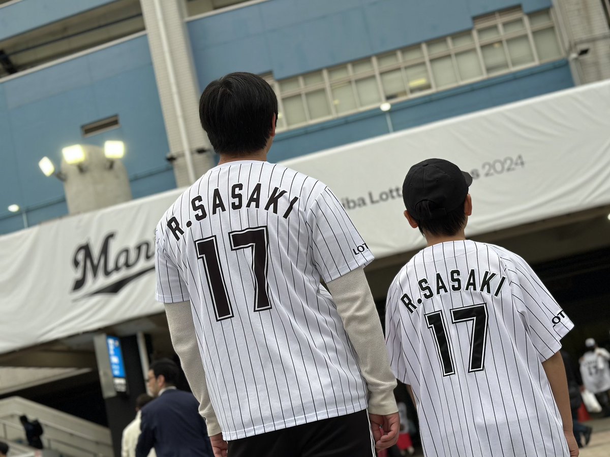 浦安から観戦に訪れたこちらの親子。 「朗希投手がカッコよく全部アウトにしてるのが見たい!」とプレーボールを心待ちにしていました! 球団公式戦通算10,000試合を勝利で飾りましょう! #chibalotte #広報