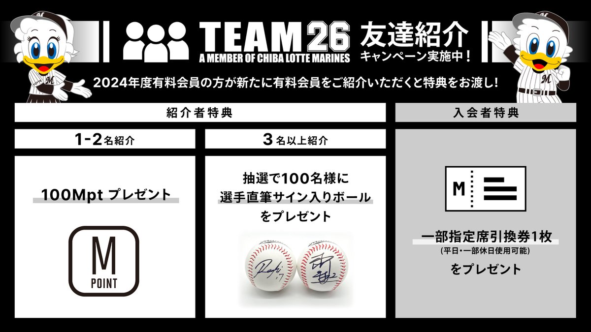 /#TEAM26友達紹介キャンペーン実施中!\2024年度のTEAM26有料会員の方が新たに有料会員を紹介いただくと、双方に特典をお渡しします!さらに3名以上紹介いただいた方には、抽選で選手直筆サイン..
