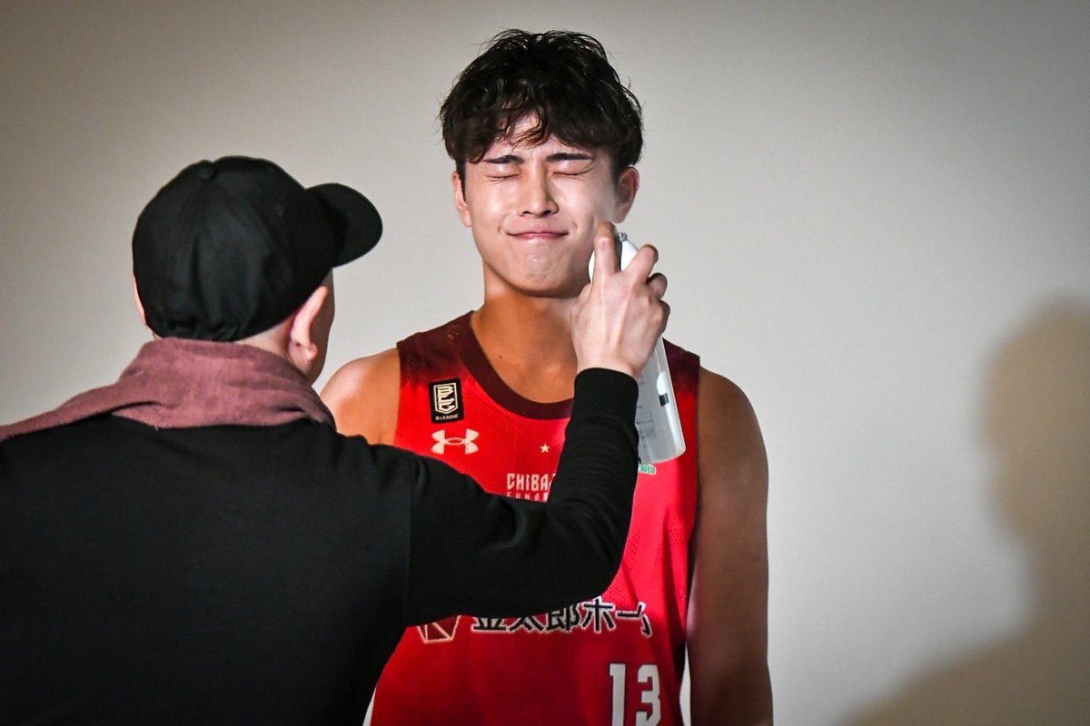 広報のカメラロールに留めておくわけにもいかないので本人にバレないことを願いながら....Safariの撮影中、汗を演出するための霧吹きをかけてもらっている時の颯太です🫧#千葉ジェッツ#大倉颯太#イケメ..