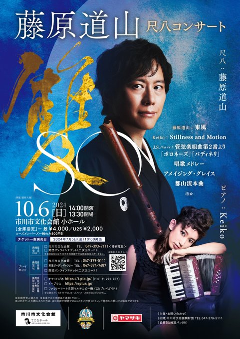 【明日公演】*当日券販売ございます*藤原道山尺八コンサート「雙-SO-」〈時間〉開演14:00(開場13:30)〈会場〉市川市文化会館小ホール皆さまのお越しをお待ちしております!詳細はこちらhttps..
