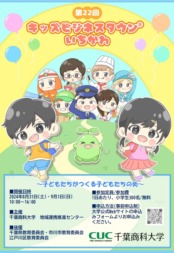 8/31と9/1、「第22回キッズビジネスタウン®いちかわ」を開催しますキャンパスを「子どもたちがつくる子どもたちの街」とし地域の小学生に労働や消費などの体験を通して“まちの機能や仕組み”を学んでもら..