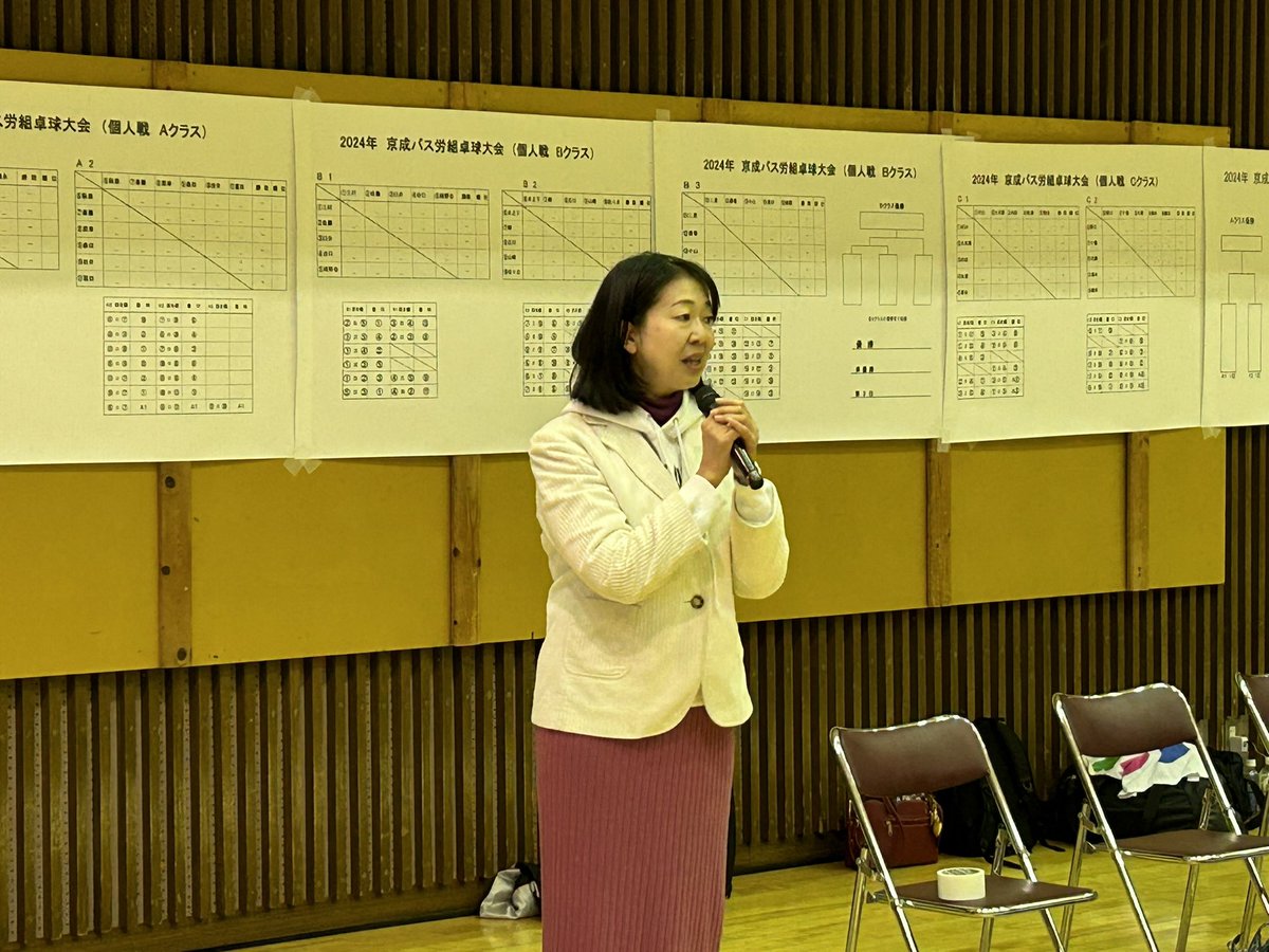 京成バス労働組合の卓球大会へ。2024年問題に千葉県としても全力を尽くすことをお話ししました地域の皆様の移動手段の維持・確保に向けて働く皆様の環境整備に共に頑張ります#守屋貴子#市川市#千葉県#京成バ..