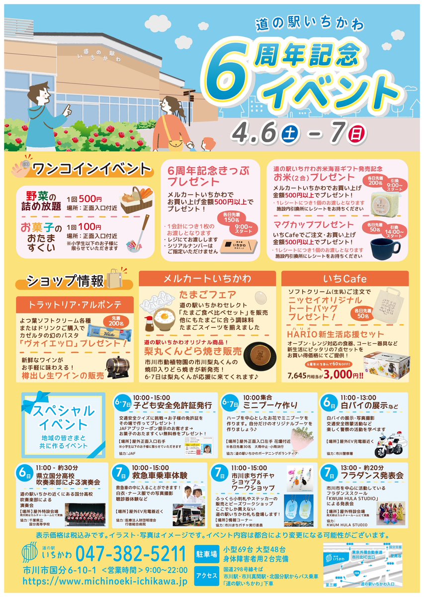 👑6周年記念イベントイベント情報!👑4月6日(土)、4月7日(日)は✨道の駅いちかわ6周年記念イベント✨を開催いたします!6日・7日は地域の皆様や団体にご協力いただき、屋外イベントも目白押し👀タイムス..