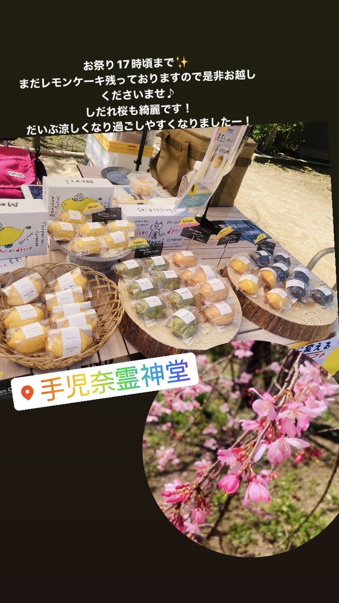 お祭り17時頃まで✨ インスタやTwitterをみてきました!って方も多く嬉しいです! まだレモンケーキ残っておりますので是非お越しくださいませ♪ しだれ桜も綺麗です! だいぶ涼しくなり過ごしやすくなりましたー!