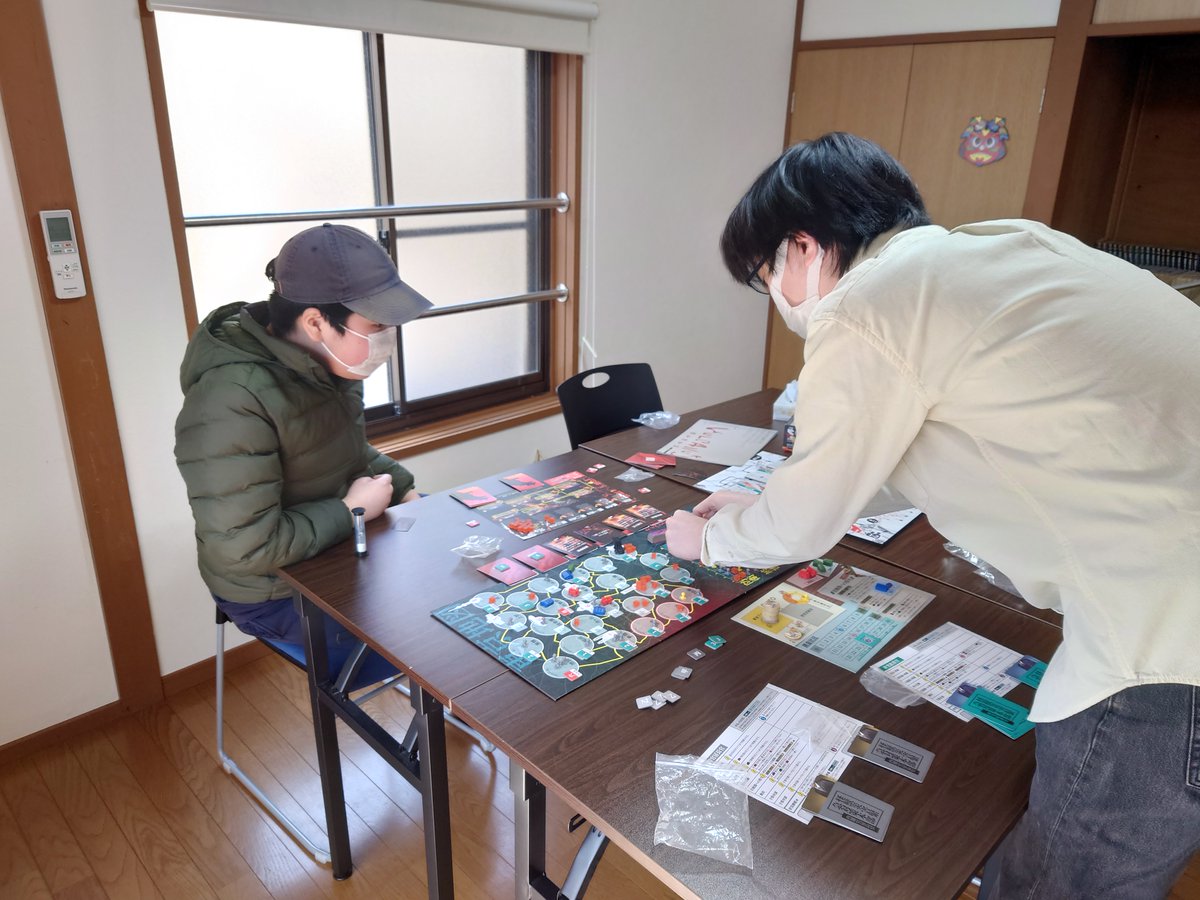 【ネモ市川】最近タイマンでいろいろなボードゲームの勝負を挑まれるスタッフ彼はこの春から中等部年齢になるんですがここ数年で思考・発想力が非常に鍛えられてきて、大人が本気でやって毎回ギリギリ勝ったり負けた..