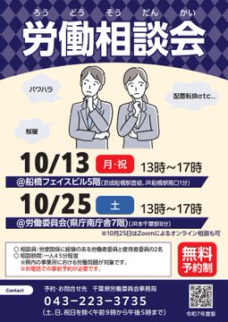 【無料労働相談会のご案内】 労働者や労働組合、使用者を対象に、パワハラや解雇、賃金引下げなどの問題について、豊かな知識と経験を持つ労働委員会の委員が相談に応じ、問題の解決に向けてアドバイスします。詳細はURLをご覧ください。 日程:10/13(月・祝)、10/25(土) https://pref.chiba.lg.jp/chiroui/press/2025/soudankai-r7.html…
