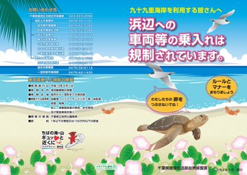 【九十九里浜への車両等の乗入れは規制されています】千葉県が誇る風景地である県立九十九里自然公園は、海浜植物が生育し、コアジサシの営巣・アカウミガメの産卵地でもあります。自然環境を守るため、砂浜への車両..