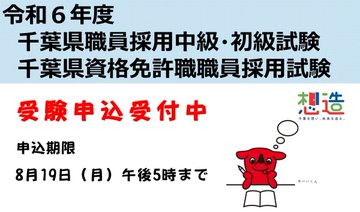 【千葉県職員採用中級・初級・資格免許職試験✐】の申込受付を開始しました!原則、インターネットによりお申し込みください。(受付締切:8月19日(月)午後5時まで)詳細はURLをご確認ください。多くのお申..