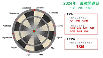 ここ数年で『一粒万倍日』という言葉をよく聞くようになった気がします。そして昨日は今年一番の開運日だったらしいです。(縁起の良い日が3つ重なっている)今年の開運日リストをダーツボード風にまとめました。あ..