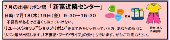 出張リボン館を開催します#リユース品の販売や#不要品寄付&#フードドライブの受付を行います。普段リボン館に来られない方チャンスです!ぜひお越しください