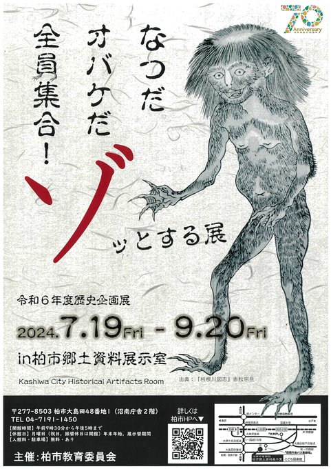 令和6年度歴史企画展\ゾッとする展なつだオバケだ全員集合!/幽霊,カッパ,鬼などゾッとする資料を集めました!暑い夏にひんや~り体験をお届けします!ぜひお越しください♪◎7/19(金)-9/20(金)◎..
