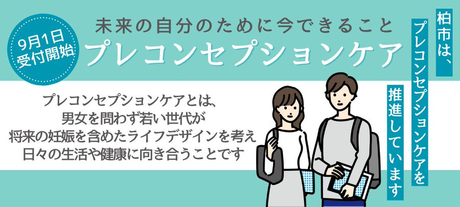 #柏市の18~39歳までの皆さんへ9月1日から、#プレコンセプションケア推進事業(ゼミ+健診費用一部助成)を開始将来の妊娠に備えて、正しい知識を身につけ、あなたらしいライフデザインを描いてみませんか?..