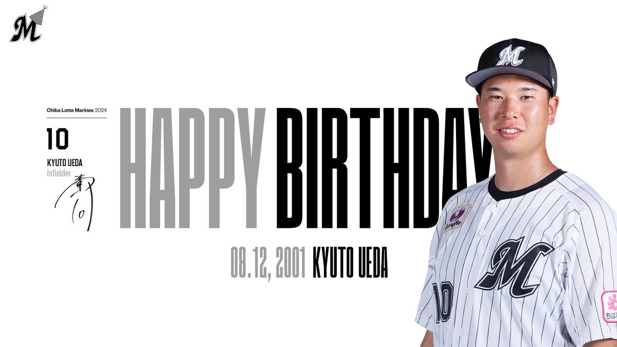 本日8/12は、#上田希由翔選手の誕生日です。おめでとうございます!▼プロフィールはこちらhttps://marines.co.jp/team/player/detail/2024_00001334...