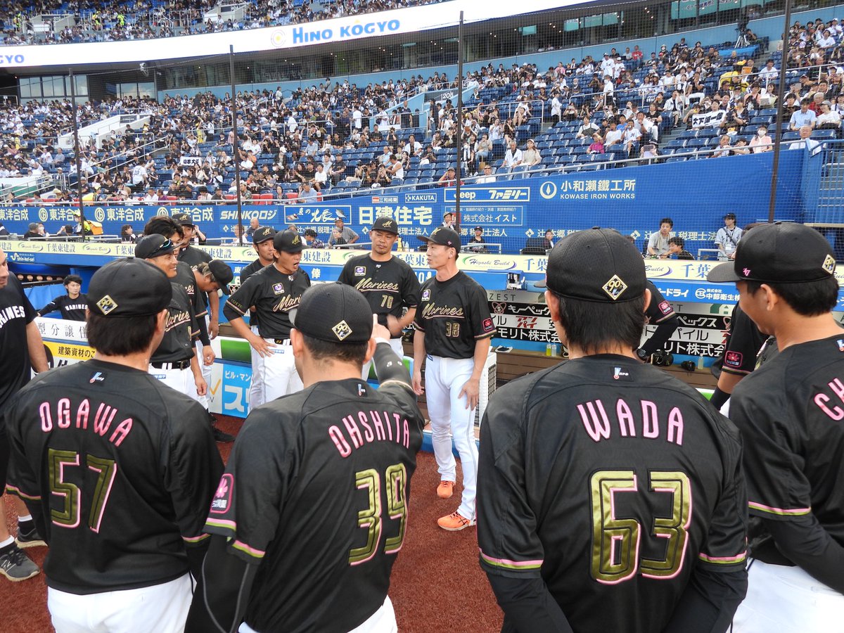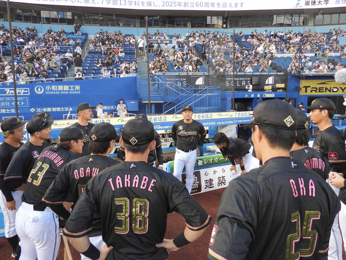 本日は#髙部瑛斗選手が声出しでチームを鼓舞します。首位ホークスとの一戦、まもなくプレーボールです!#chibalotte#広報