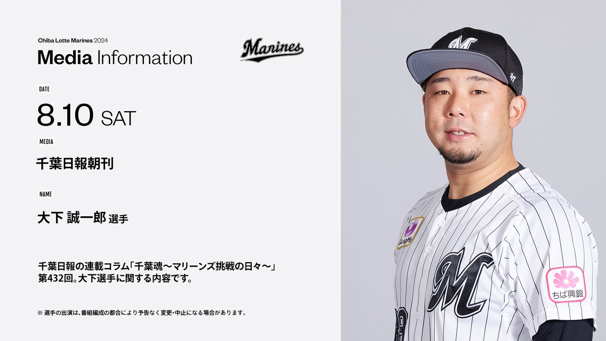 /明日のメディア情報!\■8/10(土)千葉日報朝刊球団広報による千葉日報の連載コラム「千葉魂~マリーンズ挑戦の日々~」第432回。#大下誠一郎選手に関する内容です。▼https://marines...