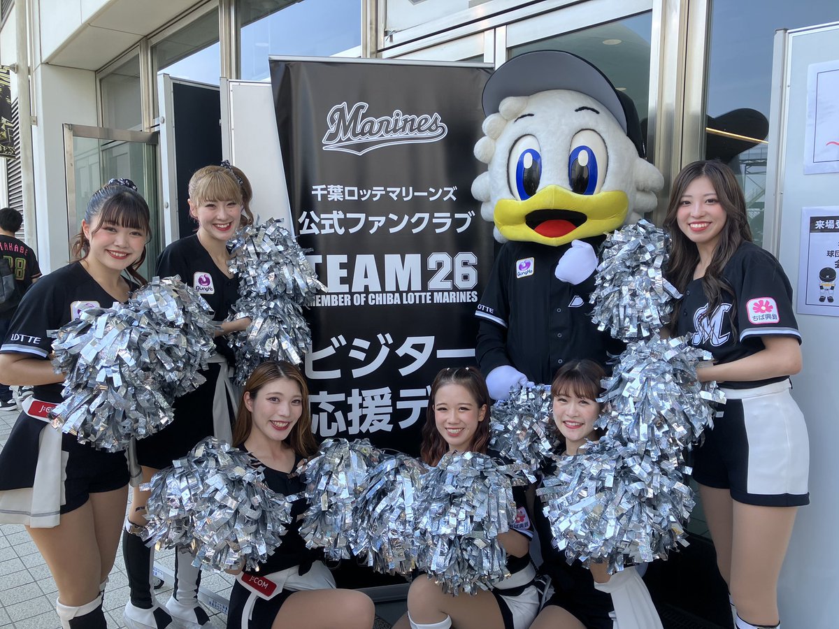 /ビジター応援デーブースにマーくんとM☆Splash!!が登場!\先ほどビジター応援デーブースにマーくんとM☆Splash!!が遊びに来てくれました!「来場登録、忘れないでね!荻野選手・角中選手のカー..