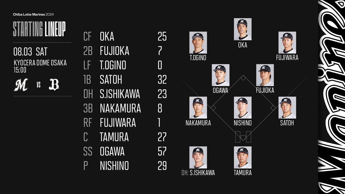 #MarinesStartingLineuphttps://marines.co.jp/gamelive/result/2024080301/…#chibalotte#自分たちを超えてゆく
