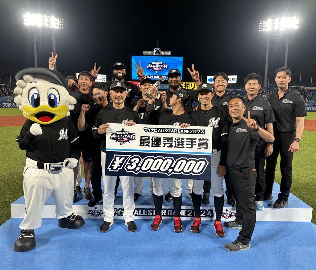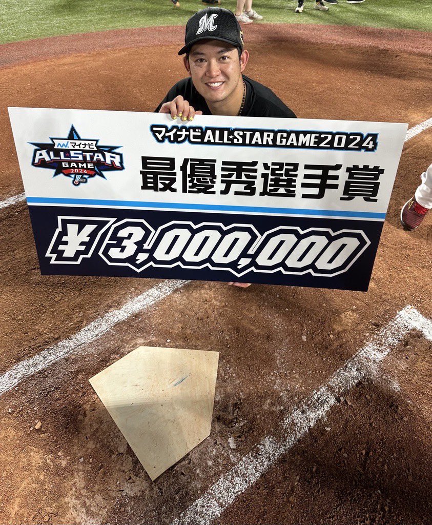 7/24(水)「マイナビオールスターゲーム2024」の第2戦が明治神宮野球場で開催され、#佐藤都志也選手が最優秀選手賞に選出されました!▼https://marines.co.jp/news/deta..