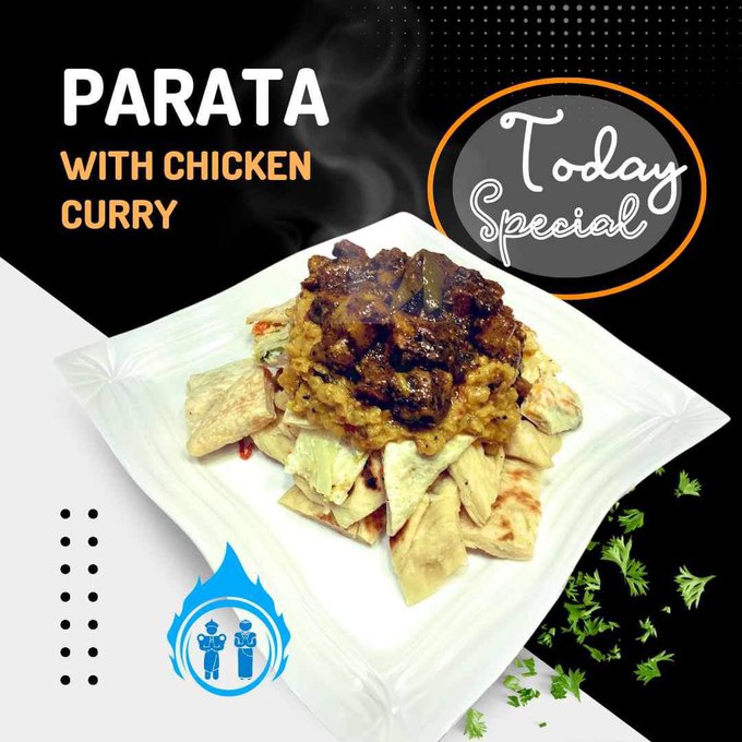 本日のスペシャル:パラタとチキンカレー!おいしいものが食べたいですか?スパイスの効いたチキンカレーと相性抜群のパラタをお楽しみください。今日だけの特別なコンボをお見逃しなく!