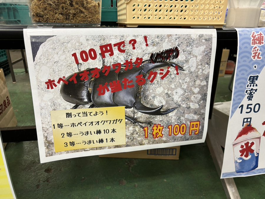 なんと!!ホペイオオクワガタが当たるスクラッチくじが100円で出来ちゃうイベントを臨時開催!4匹しかいないから…早いものがち!!大きくて厚みがあって迫力あるー!9時30分頃から開催予定#オオクワガタ#..