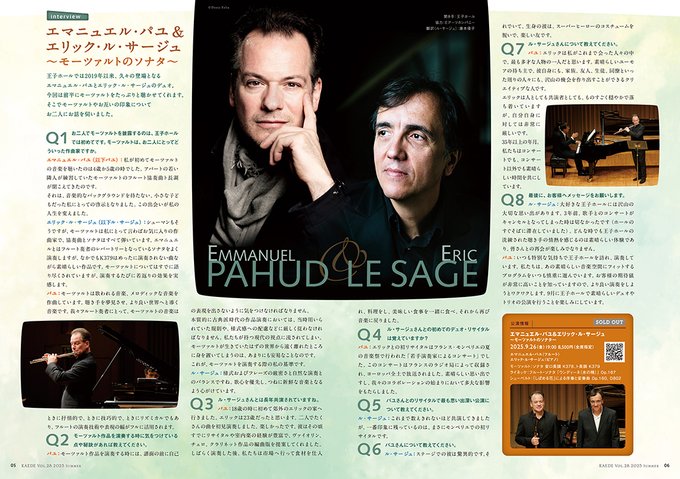 【インタビュー】エマニュエル・パユ&エリック・ル・サージュ王子ホールでは2019年以来、久々となるエマニュエル・パユとエリック・ル・サージュのデュオ。今回は前半にモーツァルトを2曲たっぷりと聴..
