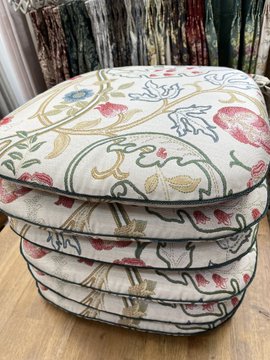 ダイニングシートクッション川島織物セルコン、モリスデザインスタジオより。マリーイザベル。1枚¥10,4506枚ご購入いただきました。なかなかのボリュームです。