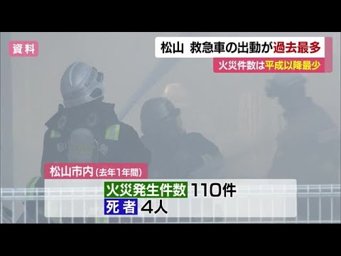 「約16分に1回」。愛媛県の松山市で2024年、救急車の出動は3万1543件となり過去最多になったことが分かりました。この一方で火災の件数は110件で平成元年以降で最も少なくなりました。松山市消防局に..