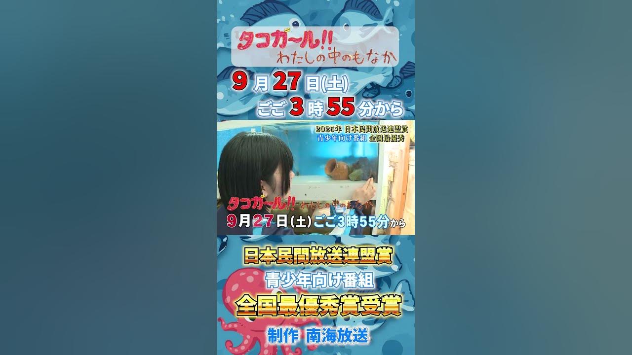 ✨最優秀賞受賞✨南海放送制作『タコガール!!わたしの中のもなか』が日本民間放送連盟賞青少年向け番組部門で全国最優秀賞を受賞しました!番組の放送は、あす9月27日(土)ごご3時55分~📺