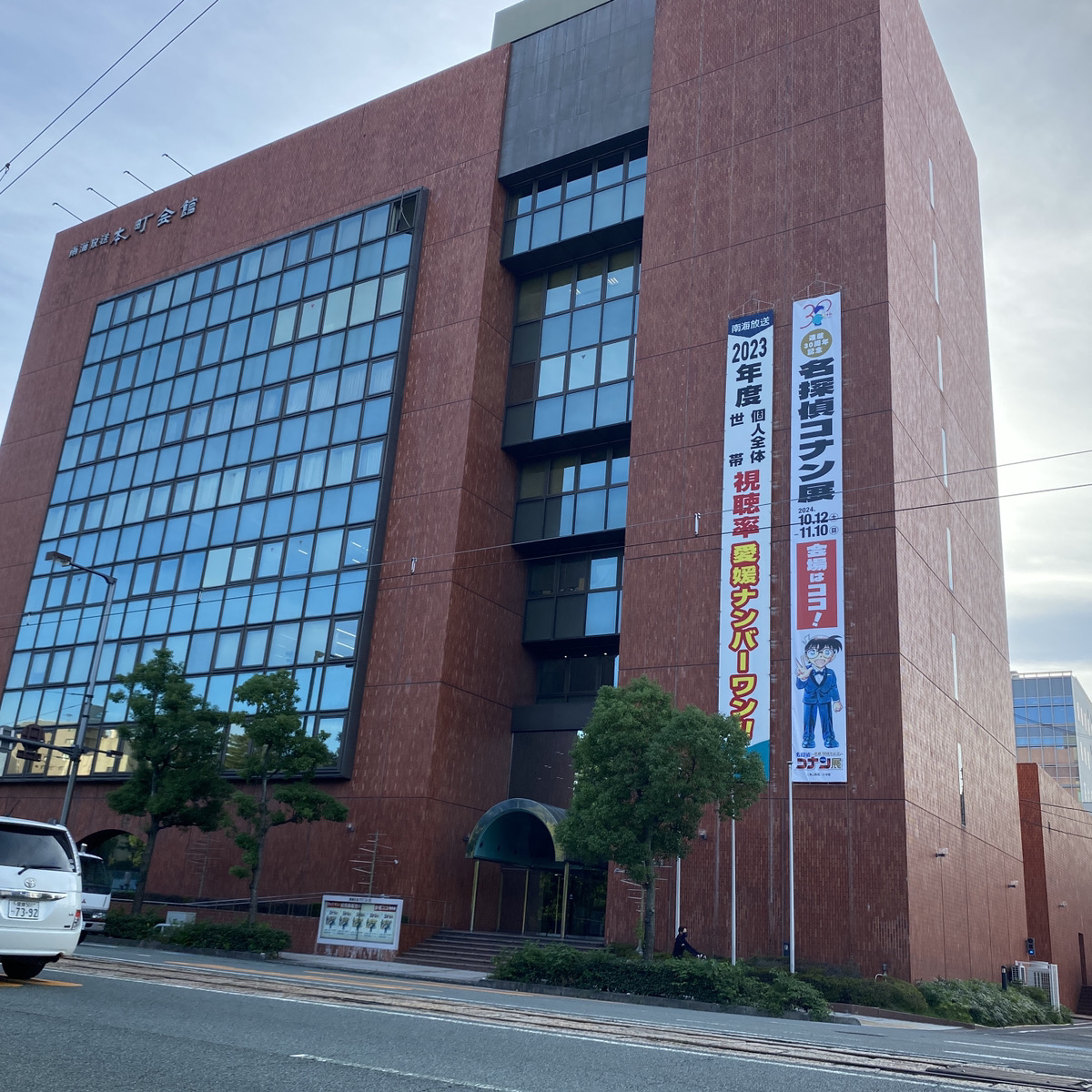//南海放送本町会館に巨大懸垂幕がお目見え\\#コナン30周年展#松山会場10/12(土)~南海放送本町会館にて開幕正面玄関横には懸垂幕も設置会場はココ南海放送本町会館ですたくさんのご来場お待ちしてお..